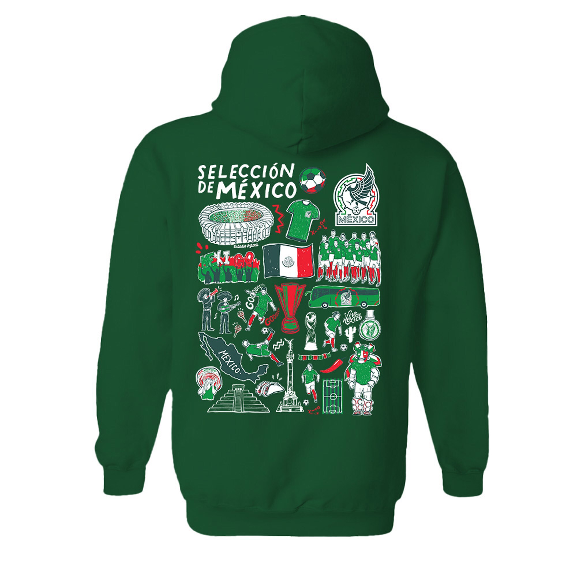 • Add a touch of artistic flair to your Mexico National Team game-day look with the Vive La Fete Impressions Artwork Pullover Hoodie. Featuring a printed hand-sketched collage that highlights the team, this pullover is perfect for the Mexico National Team supporter looking to celebrate their team's iconic history with artistic style. Crafted using soft, breathable performance fabric with a comfy fleece interior, you'll be able to stay warm as you rep your team on chilly days.